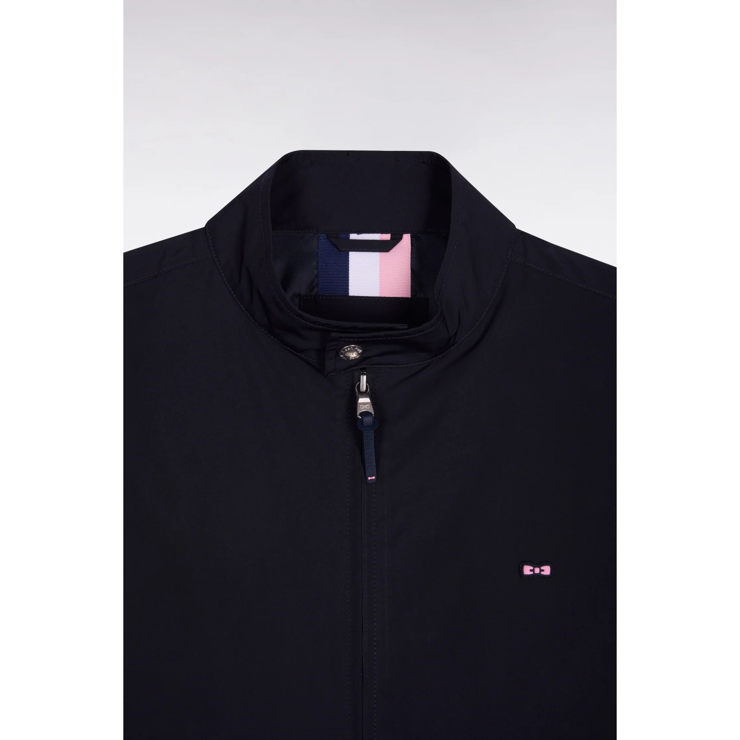 Le petit col motard boutonné apporte une touche unique, tandis que les poches latérales passepoilées ajoutent une note pratique. Le zip droit avec curseur siglé et l’emblème nœud papillon témoignent d'un savoir-faire raffiné. Et ne parlons même pas des œillets d'aération qui garantissent un confort optimal !