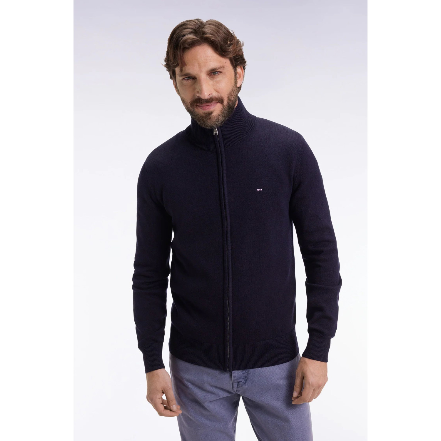 Ce cardigan zippé en jersey de coton et laine est un classique du vestiaire automne-hiver masculin. La broderie nœud papillon sur la poitrine apporte une signature distinctive à ce modèle minimaliste au col montant garantissant confort et élégance au quotidien.