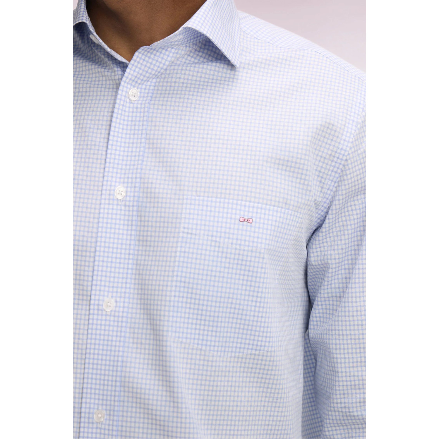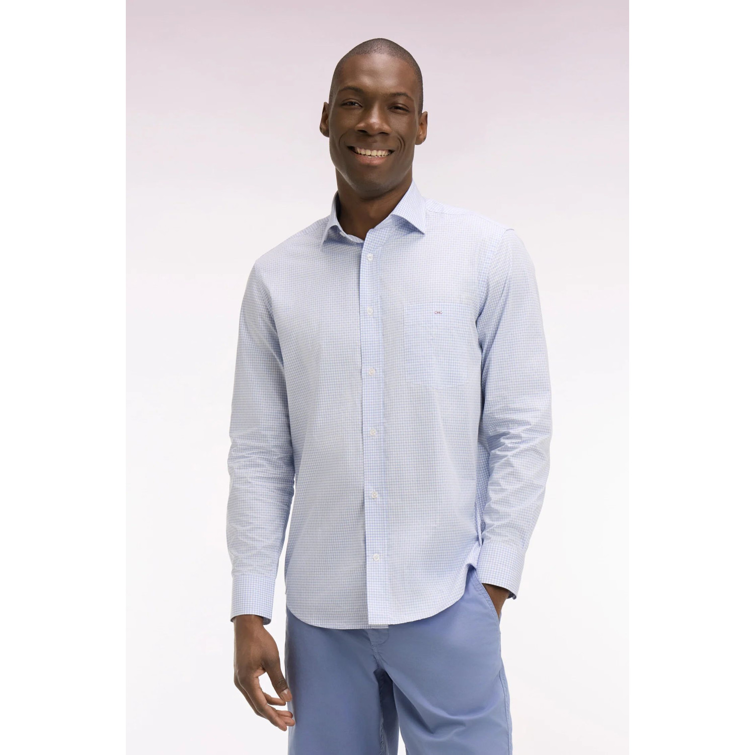 Cette chemise en coton dobby se distingue par son tissage subtil qui apporte du relief à ses motifs carreaux déclinés en coloris ciel ou rose. Sa coupe regular assure une silhouette confortable et impeccable en toutes circonstances. Dotée d’un col classique, d'une poche poitrine et de finitions soignées, elle s’associe aisément à un chino comme à un jean pour une allure chic et décontractée. Un essentiel du vestiaire masculin à adopter sans tarder.
