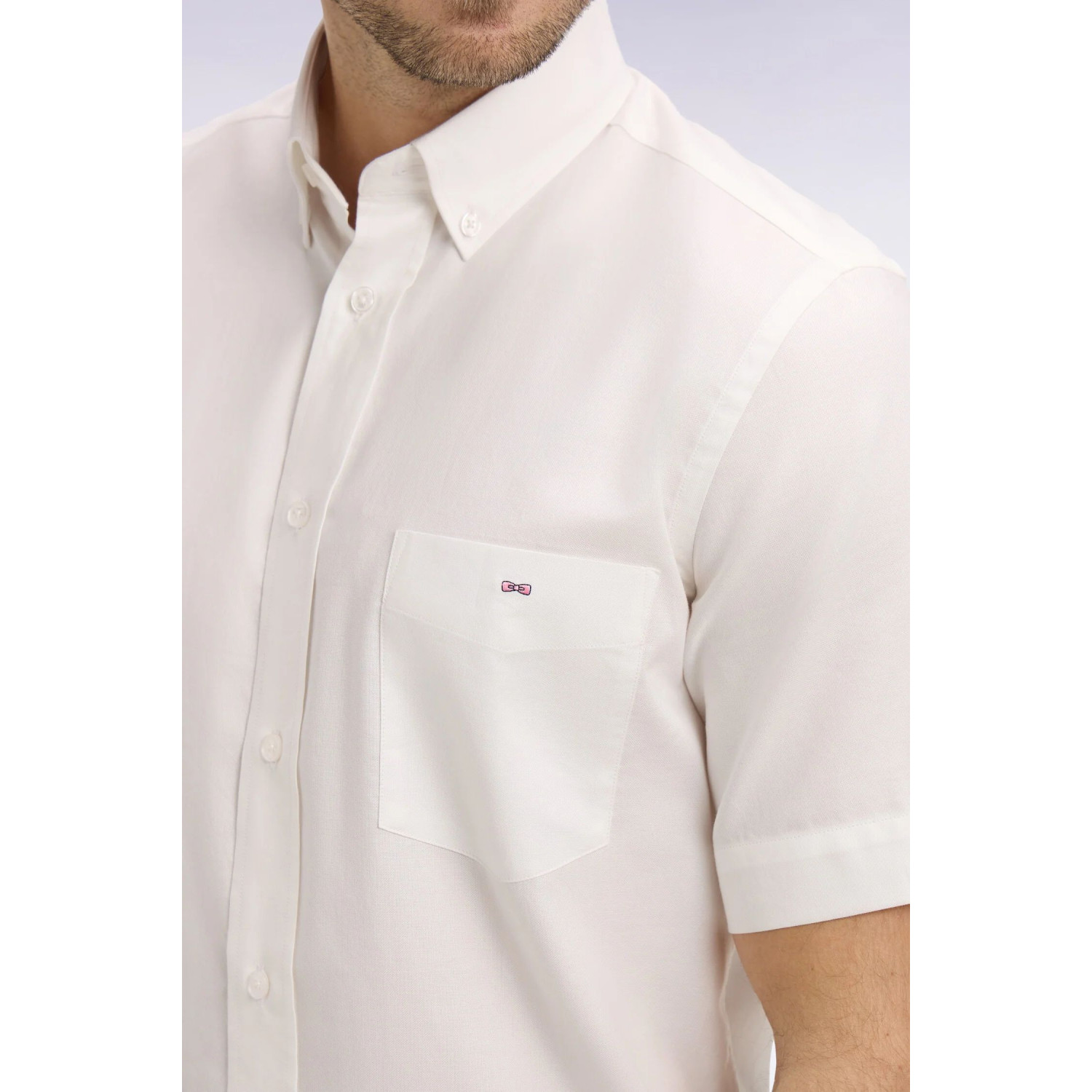 Avec sa coupe droite élégante et sa poche poitrine plaquée, cette chemise à manches courtes allie confort et sophistication. Le col boutonné et le bas arrondi ajoutent une touche raffinée, tandis que la broderie emblématique du nœud papillon témoigne d'un savoir-faire artisanal unique. Le pli au dos assure une aisance de mouvement, parfaite pour les chaudes journées d'été.