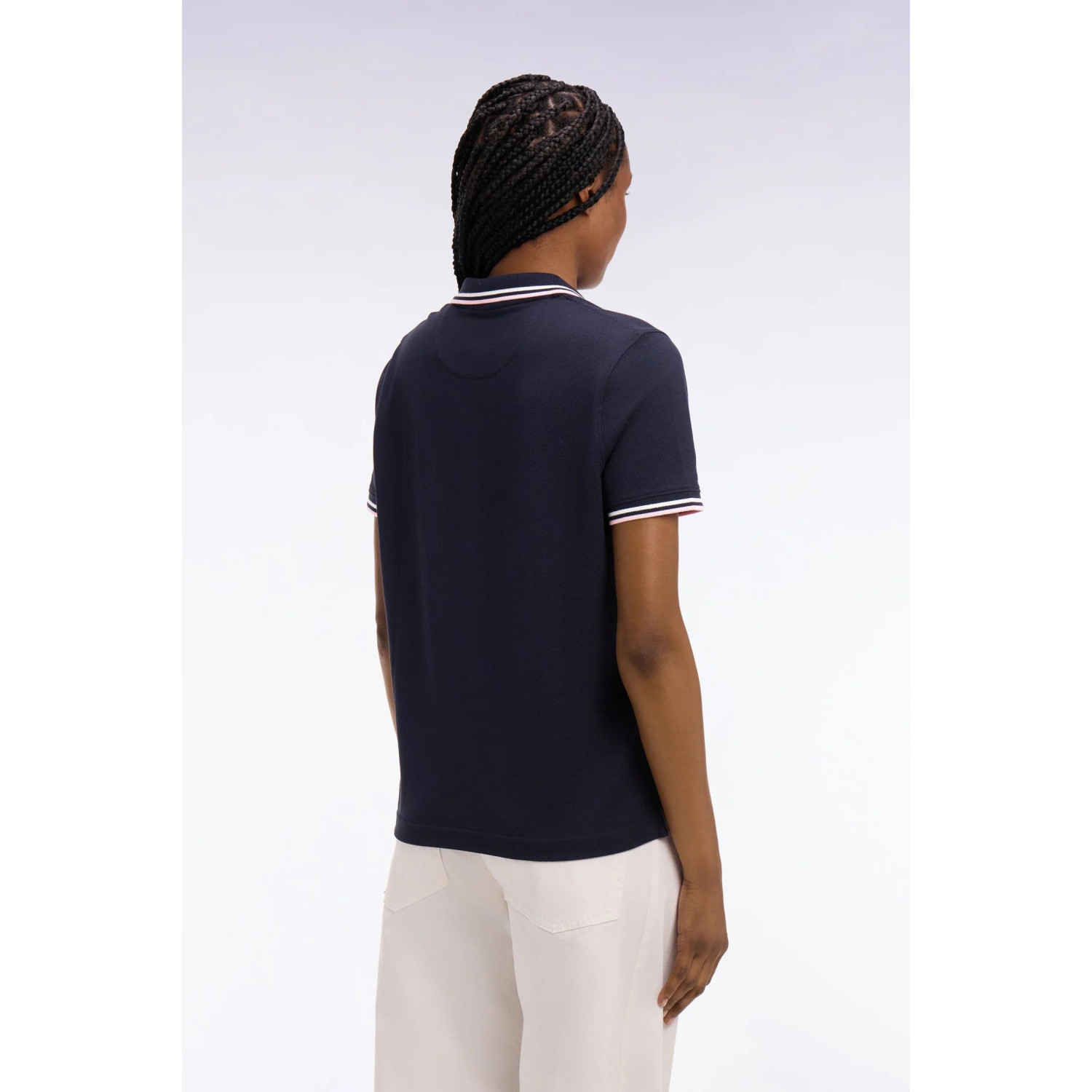 Le polo à manches courtes en pur coton se positionne comme un élément essentiel du vestiaire féminin, alliant confort et élégance. Sa coupe droite assure une aisance optimale, tandis que son style sport chic est renforcé par des détails raffinés. L'emblème nœud papillon brodé sur la poitrine, associé aux finitions en bords-côtes à fines rayures au col et aux manches, confère une touche subtilement féminine.
