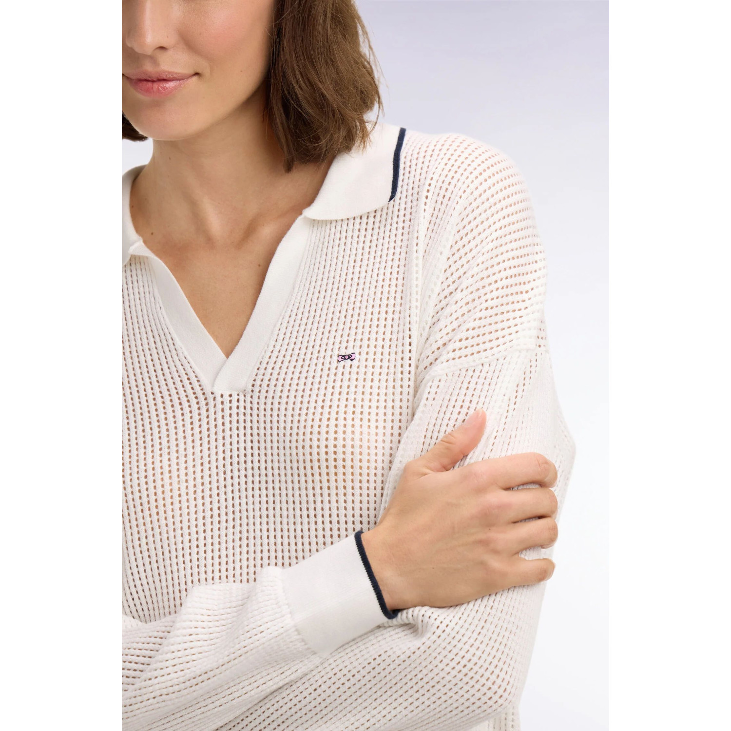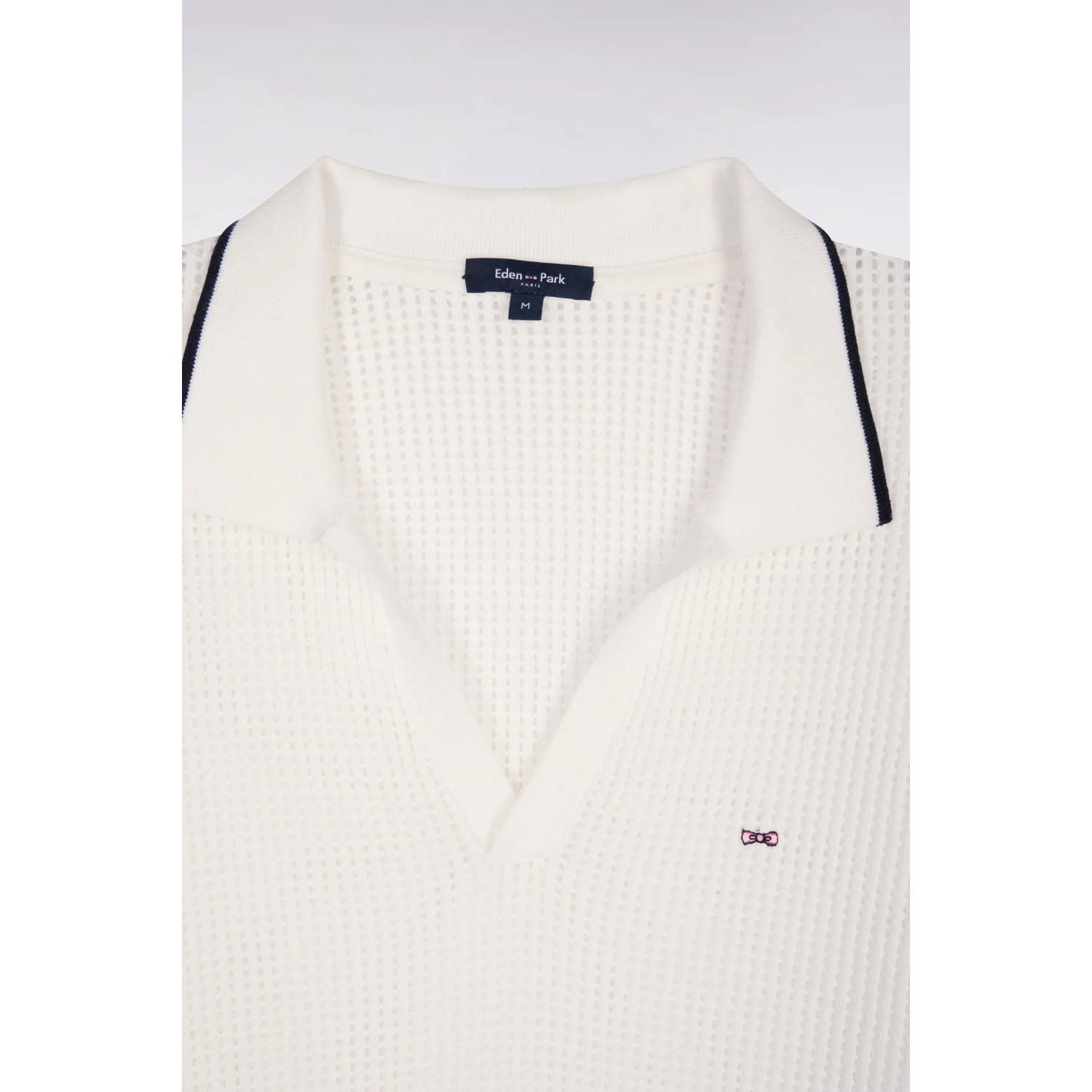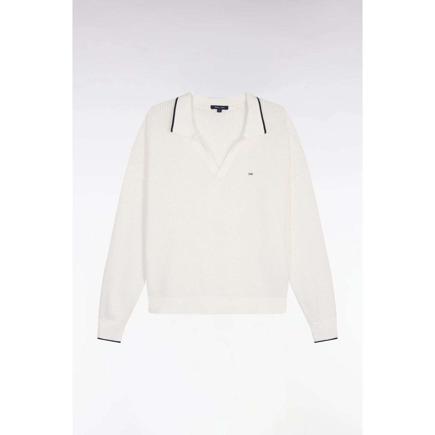 Découvrez notre pull col polo à manches longues, une pièce incontournable de votre garde-robe. Disponible en marine ou en blanc, il se distingue par sa maille mesh légère qui offre fraîcheur et confort tout au long de la journée. Cette matière respirante apporte également un relief subtil, ajoutant une touche de modernité à votre style.