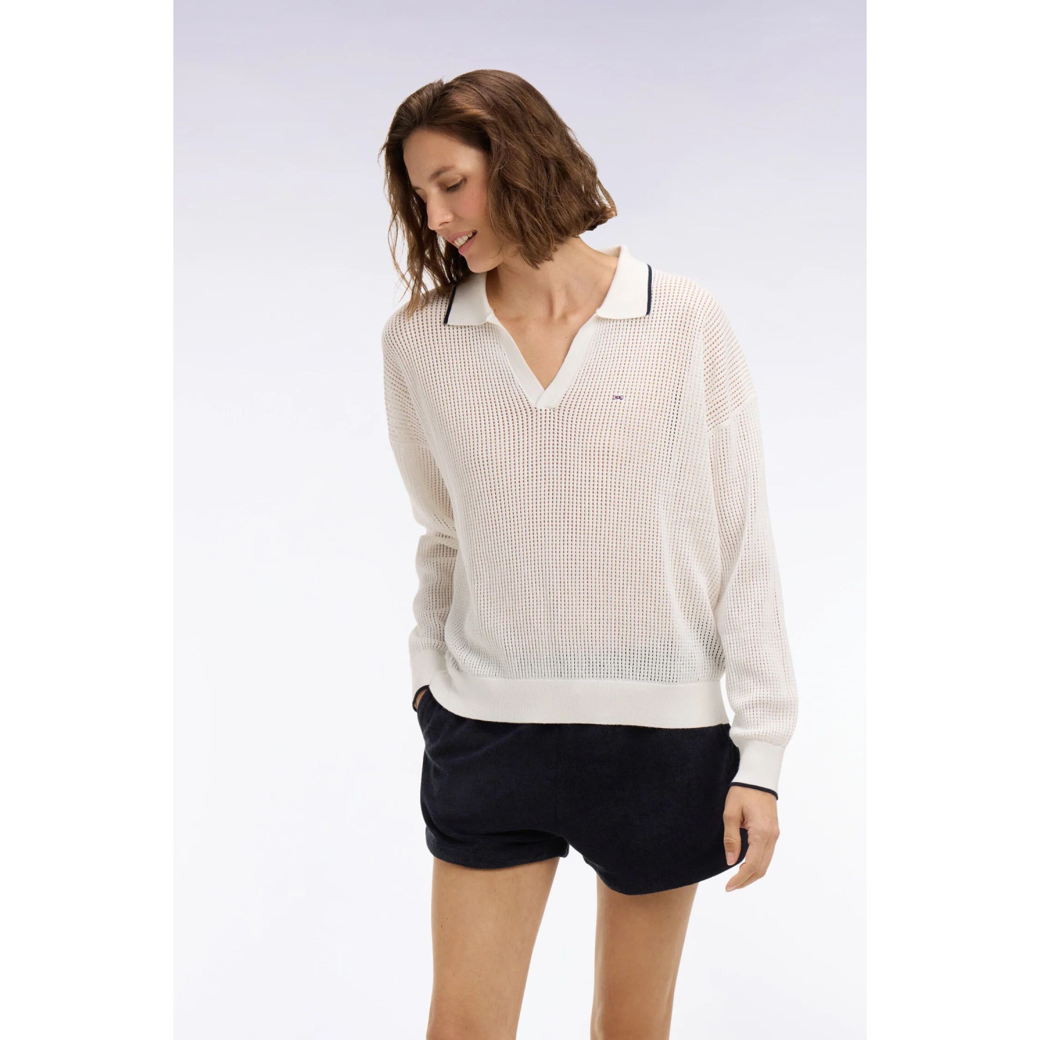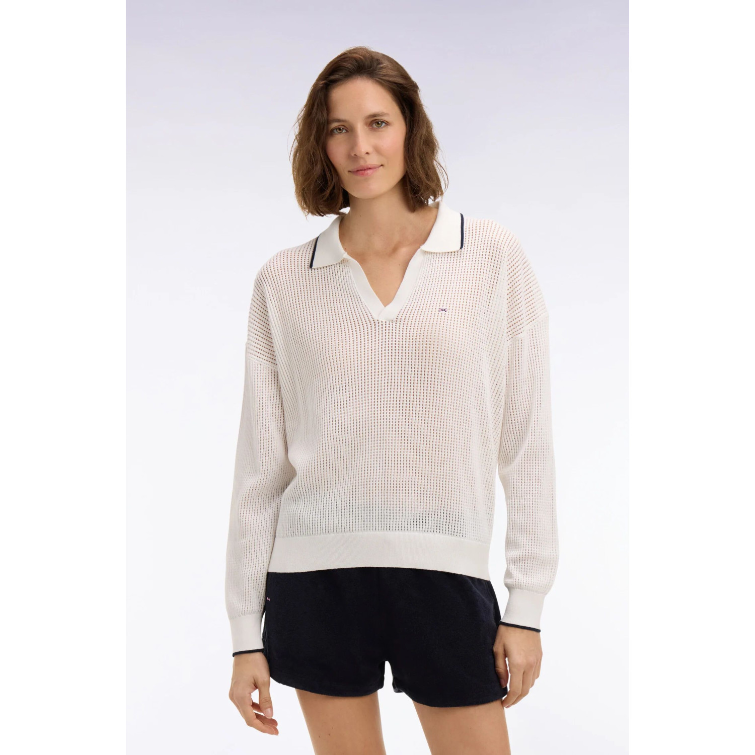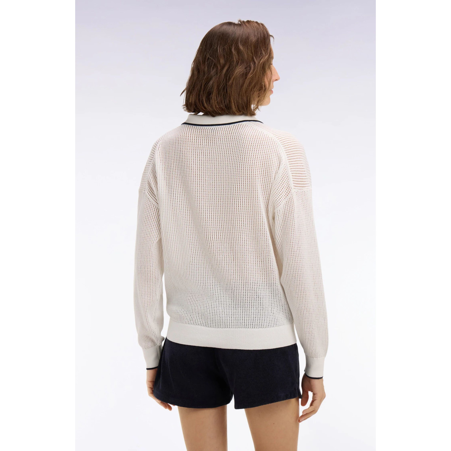 Découvrez notre pull col polo à manches longues, une pièce incontournable de votre garde-robe. Disponible en marine ou en blanc, il se distingue par sa maille mesh légère qui offre fraîcheur et confort tout au long de la journée. Cette matière respirante apporte également un relief subtil, ajoutant une touche de modernité à votre style.